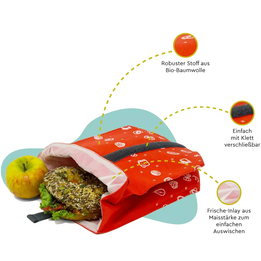 Der Lunchbag ist die praktische Alternative zu Einwegverpackung und Plastikdosen. Darin transportierst du bis zu 4 belegte Brötchen.