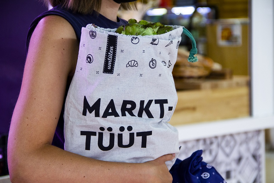 Mit dem Gemüsebeutel auf dem Wochenmarkt